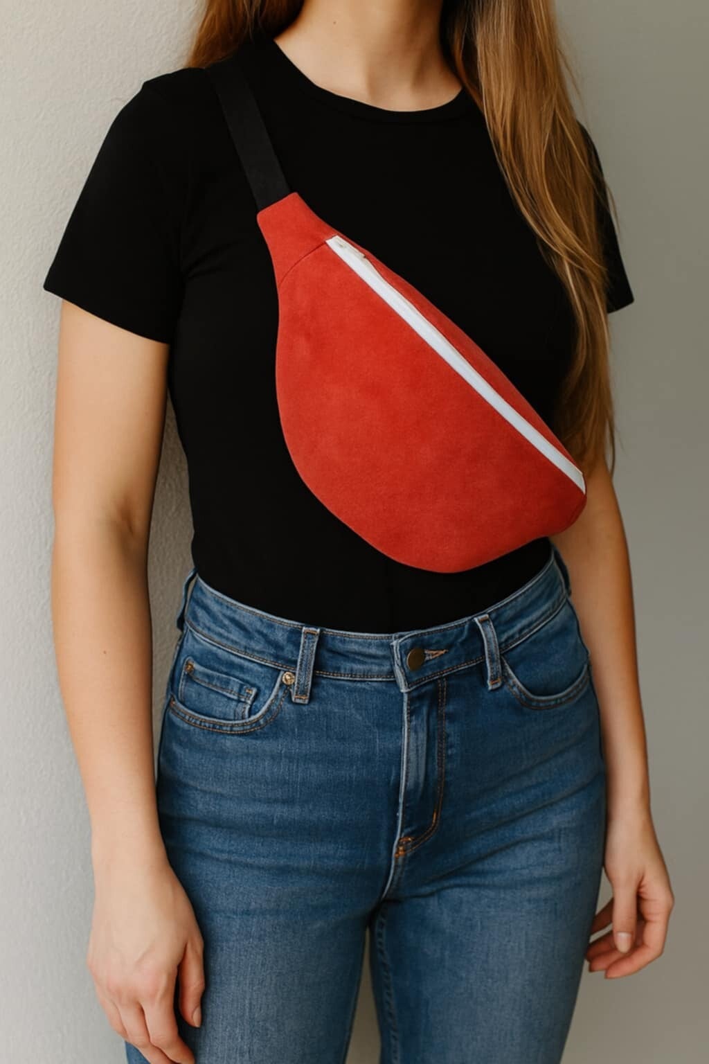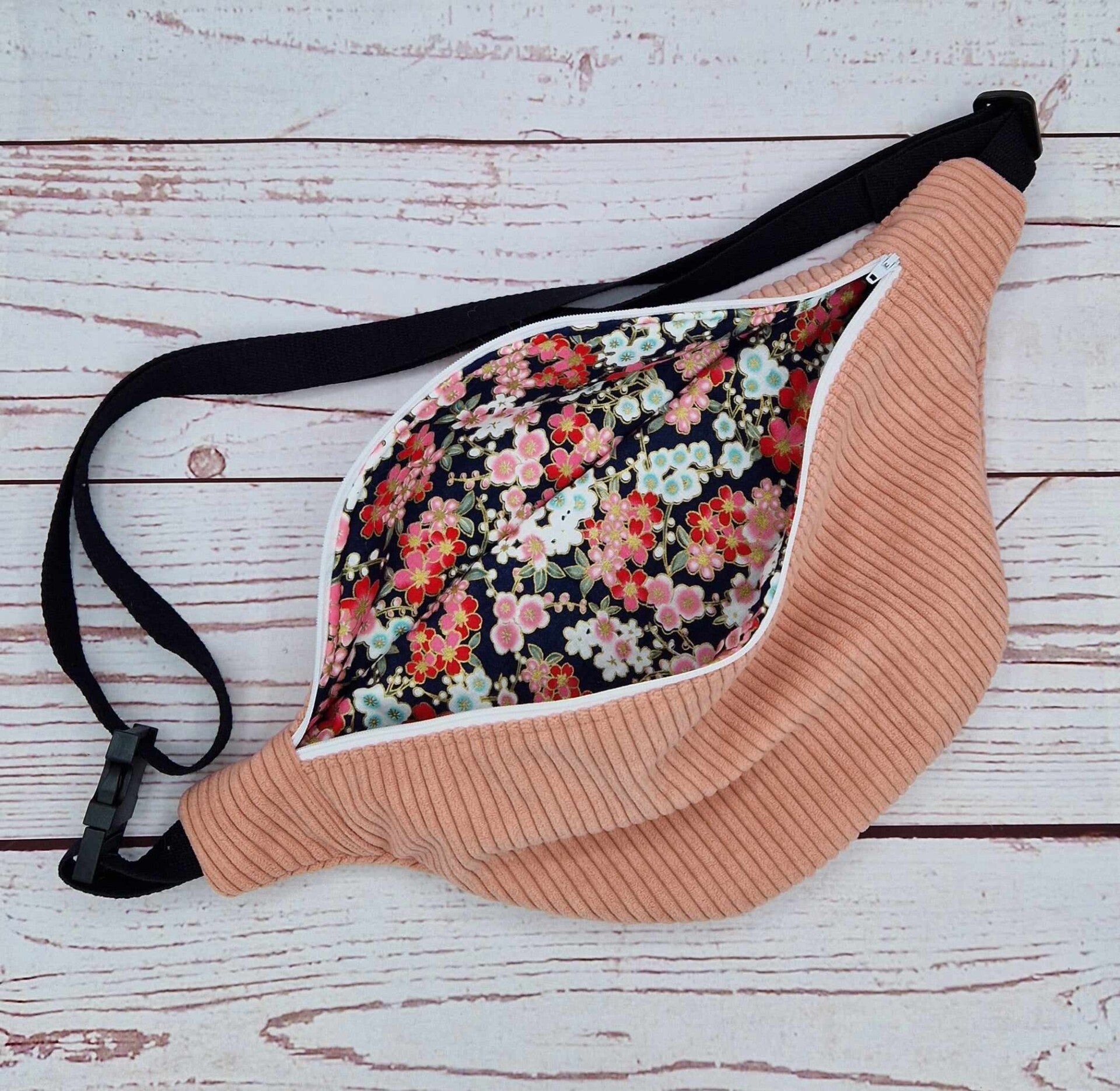 Tous nos modèles de sac banane Agnès sont équipés d’une fermeture éclair blanche et d’une sangle réglable noire