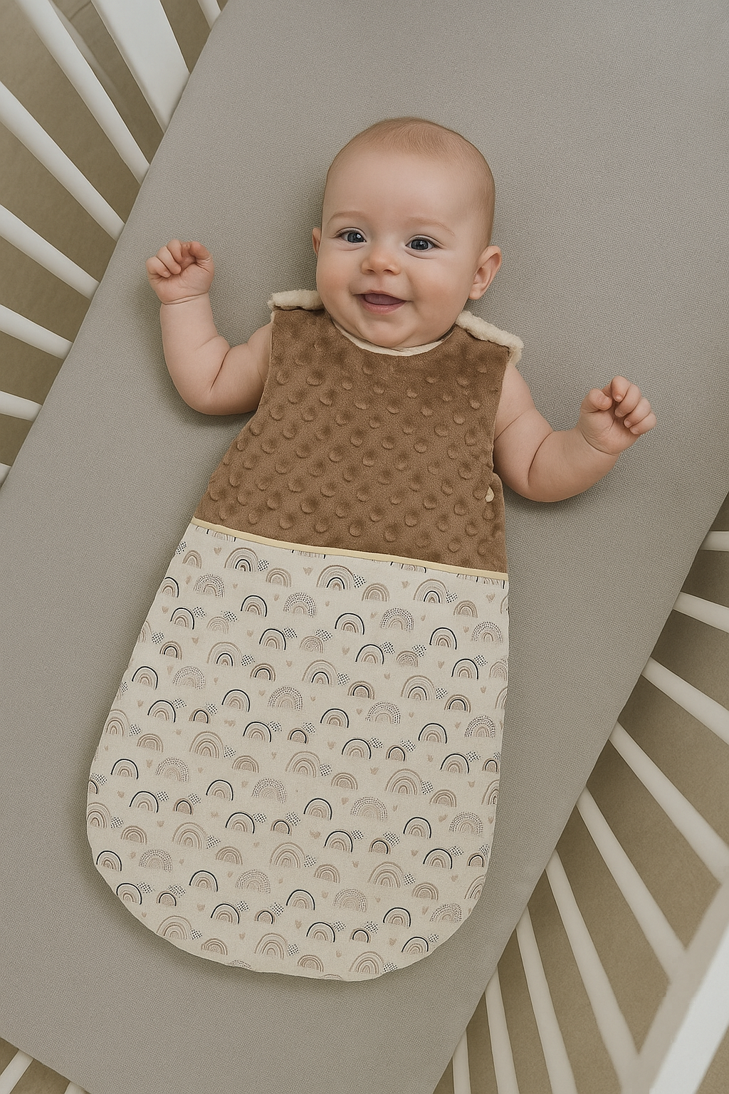 Craquez pour cette magnifique gigoteuse arcs en ciel, bien chaude, idéale pour les premiers mois de bébé